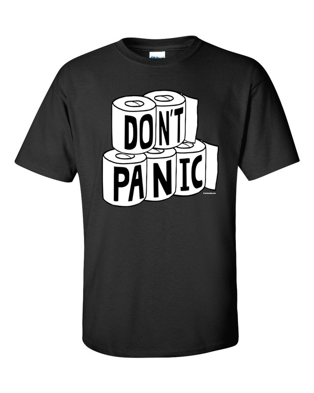 Lighten the mood in this hilarious toilet paper t-shirt! The shirt reads “Don’t Panic†on rolls of tp. Although intestinal problems are not a symptom of the COVID-19 coronavirus, people still flocked to grocery stores around the world for…toilet paper. The COVID-19 virus is sweeping our nation and causing a global pandemic. Together we can get through this coronavirus. In these times of crisis let’s work together to fight and stop the spread of the coronavirus by social distancing and practicing proper hygiene. Also, do your part and self-quarantine! Social distancing is not just about you, it’s about our elders and those with autoimmune diseases. Show your support for the United States of America and prove that we can all come together to stop this world-wide pandemic in its tracks. This super comfy tee is made of 6 oz., 100% preshrunk cotton. Ash grey, sport grey, and all other heather colors are a cotton/polyester blend. Double-needle stitched sleeve, hem, and 7/8†collar. Features a classic fit with taped neck and shoulders and a tear away label for maximum comfort and a perfect fit. We carry and ever-growing selection of apparel to suit the needs of the whole family. All of our tshirts are printed in-house by our professional production team. This guarantees that you are getting unique, one-of-a-kind design. Our graphic t-shirts are printed in the USA with state of the art equipment to ensure vibrant colors and lasting durability. We custom design apparel for all occasions: birthdays, holidays, Christmas, anniversaries, and more. Our apparel, hats, and tumblers make a great gift for your mom, dad, grandma, wife, husband, daughter, son, friends, and co-workers!