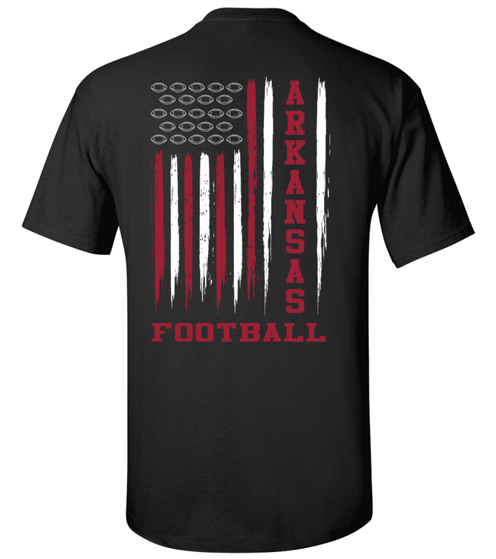 Show your team spirit with this college football flag shirt. This unisex t-shirt is perfect to wear during the football season or even simply everyday through out the year. This super comfy tee is made of 6 oz., 100% preshrunk cotton. Ash grey, sport grey, and all other heather colors are a cotton/polyester blend. Safety colors are a 50/50 cotton and polyester blend. Double-needle stitched sleeve, hem, and 7/8? collar. Features a classic fit with taped neck and shoulders and a tear away label for maximum comfort and a perfect fit. This is a back print t-shirt with a small crest on the front left chest. Sizes Small-5X. We carry and ever-growing selection of apparel to suit the needs of the whole family. All of our tshirts are printed in-house by our professional production team. This guarantees that you are getting unique, one-of-a-kind design. Our graphic t-shirts are printed in the USA with state of the art equipment to ensure vibrant colors and lasting durability. We custom design apparel for all occasions: birthdays, holidays, Christmas, anniversaries, and more. Our apparel, hats, and tumblers make a great gift for your mom, dad, grandma, wife, husband, daughter, son, friends, and co-workers!