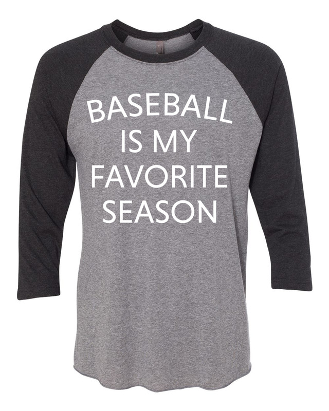 Celebrate this Baseball season with this unisex raglan tee. Let others know what your favorite season is during the year in this t-shit. Made of a soft and comfortable 4.3 oz., 50% polyester 25% combed ringspun cotton 25% rayon jersey blend. The fabric has been pre-laundered for reduced shrinkage. Features 3/4 length raglan sleeves, 1x1 baby rib-knit set-in collar, and sideseams. Machine wash cold inside out. Tumble dry low. Multiple colors to choose from. Available in sizes XS-3XL. Treat yourself or give as a gift. Great for birthdays, holidays, and special occasions. We carry and ever-growing selection of apparel to suit the needs of the whole family. All of our tshirts are printed in-house by our professional production team. This guarantees that you are getting unique, one-of-a-kind design. Our graphic t-shirts are printed in the USA with state of the art equipment to ensure vibrant colors and lasting durability. We custom design apparel for all occasions: birthdays, holidays, Christmas, anniversaries, and more. Our apparel, hats, and tumblers make a great gift for your mom, dad, grandma, wife, husband, daughter, son, friends, and co-workers!