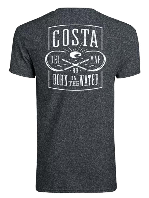 Costa Del Mar Born on the Water Fury Men's Short Sleeve T-shirt. Made of tubular knit ring spun fabric. Rib knit collar. Short Sleeves. Pullover styling. Bold graphic designs and front crest logo. Made of 65% cotton and 35% Polyester. Machine wash; Tumble dry.