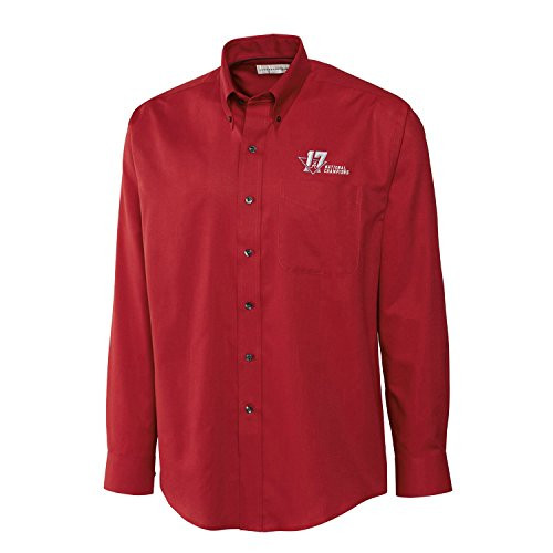 Cutter Buck?s epic easy-care Nailshead button-up will keep you checked out in style! Cheer your favorite team on with this Long Sleeve Epic Easy Care Nailshead Button Down shirt! This is the perfect addition to your wardrobe for celebrating your team's huge victory. The bold Alabama team logo within the National Football Championship logo is embroidered on the top left chest area making this your go-to top for game days and every day. This classic long sleeve nailshead shirt boasts Easy Care wrinkle resistance for a polished look all day long. It features a button-down collar, front placket, barrel cuff, double back pleat, chest patch pocket, and a C&B pennant on the left cuff. Made of 60% cotton, 40% polyester. Machine wash or dry-clean this elegant shirt.