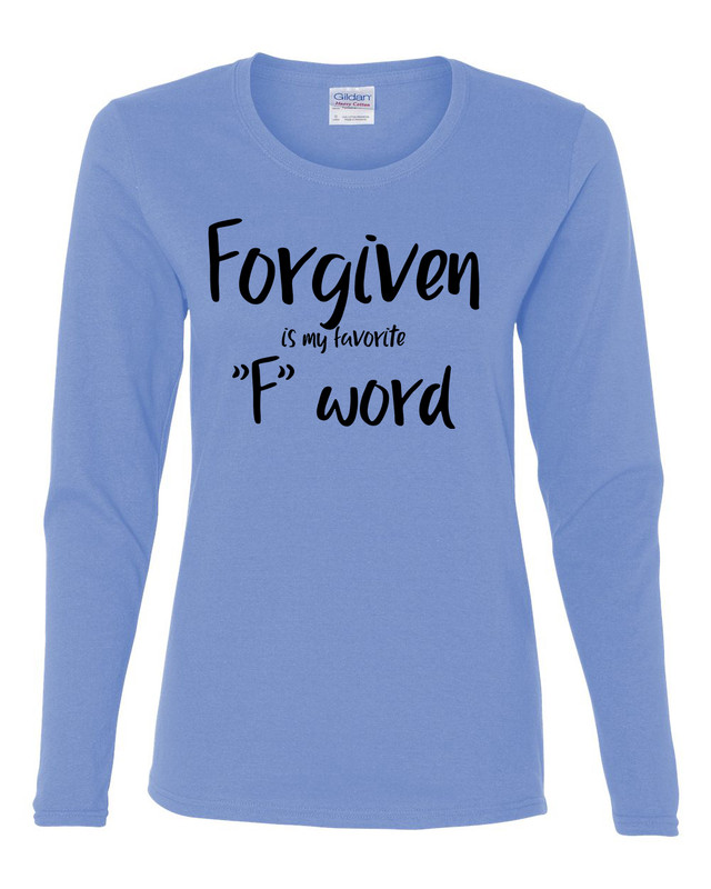 Spread a fun and inspiring message everywhere you go in this ladies Forgiven Is My Favorite F Word tee. This Christian, women's long sleeve t-shirt is sure to make a statement and let others know what you stand for. Made of a soft and comfortable 5.3 oz, 100% preshrunk heavy cotton. Ash Grey is 99% cotton, 1% polyester; Sport Grey is 90% cotton, 10% polyester. Features taped shoulder-to-shoulder and neck; double-needle stitching collar, sleeves, and bottom hem; and sideseams with slightly tapered Missy fit. Machine wash cold inside out. Tumble dry low. Multiple colors to choose from. Available in sizes XS-3XL. Treat yourself or give as a gift. Great for birthdays, holidays, and special occasions. We carry and ever-growing selection of apparel to suit the needs of the whole family. All of our tshirts are printed in-house by our professional production team. This guarantees that you are getting unique, one-of-a-kind design. Our graphic t-shirts are printed in the USA with state of the art equipment to ensure vibrant colors and lasting durability. We custom design apparel for all occasions: birthdays, holidays, Christmas, anniversaries, and more. Our apparel, hats, and tumblers make a great gift for your mom, dad, grandma, wife, husband, daughter, son, friends, and co-workers!