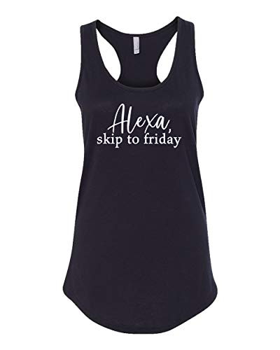 Funny "Alexa Skip To Friday" Ladies Racerback Tank. This shirt shines a humorous light on the variety of things we ask Alexa to do for us! This durable, comfortable tank top is sure to be a hit for anyone, whether you're buying it as a gift for somebody special or wearing it yourself. This listing is for a 3.9 oz., 60/40 combed ringspun cotton/polyester racerback tank. Large range of sizes are available. We carry and ever-growing selection of apparel to suit the needs of the whole family. All of our tshirts are printed in-house by our professional production team. This guarantees that you are getting unique, one-of-a-kind design. Our graphic t-shirts are printed in the USA with state of the art equipment to ensure vibrant colors and lasting durability. We custom design apparel for all occasions: birthdays, holidays, Christmas, anniversaries, and more. Our apparel, hats, and tumblers make a great gift for your mom, dad, grandma, wife, husband, daughter, son, friends, and co-workers! Sarcastic, punny, or slightly offensive, we have something for every type of humor. Our tees are a great conversation starter that will get some laughs and turn heads everywhere you go. We cover a wide range of topics: Christian, military, patriotic, political, awareness, pop culture, pet rescue shirts and more.