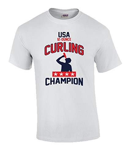 Funny Beer Pun Olympics USA 12 oz Curling Champion Adult Short Sleeve Graphic T-shirt. The front of this tee features bold text reading USA 12 oz. Curling Champion, along with graphic star accents and silhouette of person drinking alcohol. This durable, comfortable Tee is sure to be a hit for anyone loves going for gold when it comes to Beer Olympics, whether you're buying it as a gift for somebody special or wearing it yourself. This listing is for a 5.3 oz. heavyweight 100% preshrunk cotton t-shirt (Ash Grey is 99% Cotton/1% Polyester; Sport Grey is 90% Cotton/10% Polyester; and Heather Gray is 50% Cotton/50% Polyester). Variety of colors and large range of sizes available. We carry and ever-growing selection of apparel to suit the needs of the whole family. All of our tshirts are printed in-house by our professional production team. This guarantees that you are getting unique, one-of-a-kind design. Our graphic t-shirts are printed in the USA with state of the art equipment to ensure vibrant colors and lasting durability. We custom design apparel for all occasions: birthdays, holidays, Christmas, anniversaries, and more. Our apparel, hats, and tumblers make a great gift for your mom, dad, grandma, wife, husband, daughter, son, friends, and co-workers!