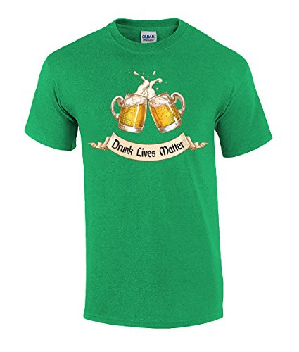 Funny Beer Graphic St Patrick's Day Drunk Lives Matter Irish Holiday Adult Short Sleeve T-shirt. The front of this tee features a bold graphic of two beer mugs with a banner underneath reading Drunk Lives Matter. This durable, comfortable Tee is sure to be a hit for anyone who loves the irish holiday, whether you're buying it as a gift for somebody special or wearing it yourself. This listing is for a 5.3 oz. heavyweight 100% preshrunk cotton t-shirt (Ash Grey is 99% Cotton/1% Polyester; Sport Grey is 90% Cotton/10% Polyester; and Heather Gray is 50% Cotton/50% Polyester). We carry and ever-growing selection of apparel to suit the needs of the whole family. All of our tshirts are printed in-house by our professional production team. This guarantees that you are getting unique, one-of-a-kind design. Our graphic t-shirts are printed in the USA with state of the art equipment to ensure vibrant colors and lasting durability. We custom design apparel for all occasions: birthdays, holidays, Christmas, anniversaries, and more. Our apparel, hats, and tumblers make a great gift for your mom, dad, grandma, wife, husband, daughter, son, friends, and co-workers!
