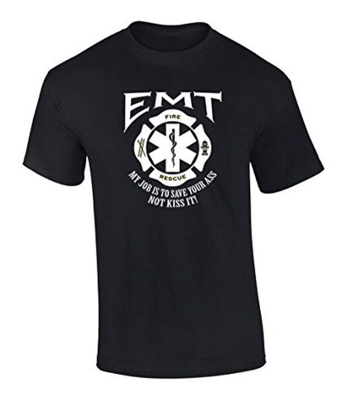 Funny "My Job is to Save Your Ass Not Kiss It" Adult Unisex Short Sleeve Shirt. An EMT's job is a tough one and they're goal is to save a life - don't expect them to coddle you in the process. This durable, comfortable T-shirt is sure to be a hit for anyone, whether you're buying it as a gift for somebody special or wearing it yourself. This listing is for a 6 oz heavyweight 100% cotton t-shirt (sports gray is 90% cotton/10% polyester; and heather gray is 50% cotton/50% polyester) Variety of colors and a large range of sizes are available. We carry and ever-growing selection of apparel to suit the needs of the whole family. All of our tshirts are printed in-house by our professional production team. This guarantees that you are getting unique, one-of-a-kind design. Our graphic t-shirts are printed in the USA with state of the art equipment to ensure vibrant colors and lasting durability. We custom design apparel for all occasions: birthdays, holidays, Christmas, anniversaries, and more. Our apparel, hats, and tumblers make a great gift for your mom, dad, grandma, wife, husband, daughter, son, friends, and co-workers!