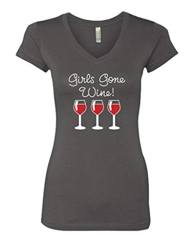 Funny Girls Gone Wine Ladies Perfect Sporty V-neck T-shirt. The front of this tee features a bold cursive text reading 'Girls Gone Wine' along with graphic of full wine glasses. This durable, comfortable top is sure to be a hit for anyone who has a great sense of humor and loves their wine- whether you're buying it as a gift for somebody special or wearing it yourself. This listing is for a 4 oz. lightweight 100% combed ring spun cotton lightweight jersey material ladies V-neck short sleeve tee. Please keep in mind these may be slightly fitted and choose size accordingly. We carry and ever-growing selection of apparel to suit the needs of the whole family. All of our tshirts are printed in-house by our professional production team. This guarantees that you are getting unique, one-of-a-kind design. Our graphic t-shirts are printed in the USA with state of the art equipment to ensure vibrant colors and lasting durability. We custom design apparel for all occasions: birthdays, holidays, Christmas, anniversaries, and more. Our apparel, hats, and tumblers make a great gift for your mom, dad, grandma, wife, husband, daughter, son, friends, and co-workers!
