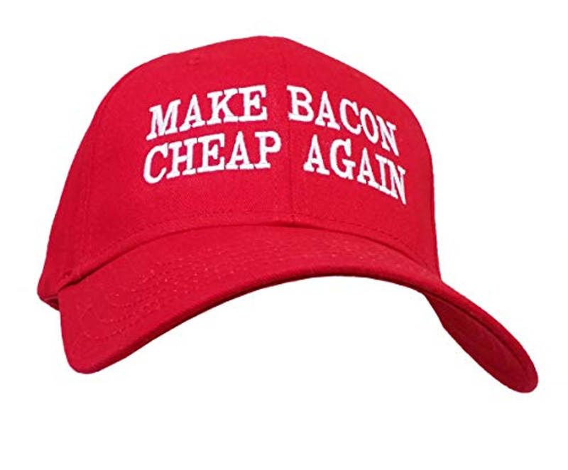 Funny "Make Bacon Cheap Again" Embroidered Otto Baseball Cap. Embroidery is centered on the front. This durable, comfortable baseball cap is sure to be a hit for anyone, whether you're buying it as a gift for somebody special or wearing it yourself. 6-Panel Cap; 6 Rows Stitching on Visor; Pre Curved Visor; Matching Color Undervisor; Adult - One Size Fits Most; Adjustable Hook & Loop Closure; 100% Cotton. We carry and ever-growing selection of apparel to suit the needs of the whole family. All of our tshirts are printed in-house by our professional production team. This guarantees that you are getting unique, one-of-a-kind design. Our graphic t-shirts are printed in the USA with state of the art equipment to ensure vibrant colors and lasting durability. We custom design apparel for all occasions: birthdays, holidays, Christmas, anniversaries, and more. Our apparel, hats, and tumblers make a great gift for your mom, dad, grandma, wife, husband, daughter, son, friends, and co-workers! Sarcastic, punny, or slightly offensive, we have something for every type of humor. Our tees are a great conversation starter that will get some laughs and turn heads everywhere you go. We cover a wide range of topics: Christian, military, patriotic, political, awareness, pop culture, pet rescue shirts and more.