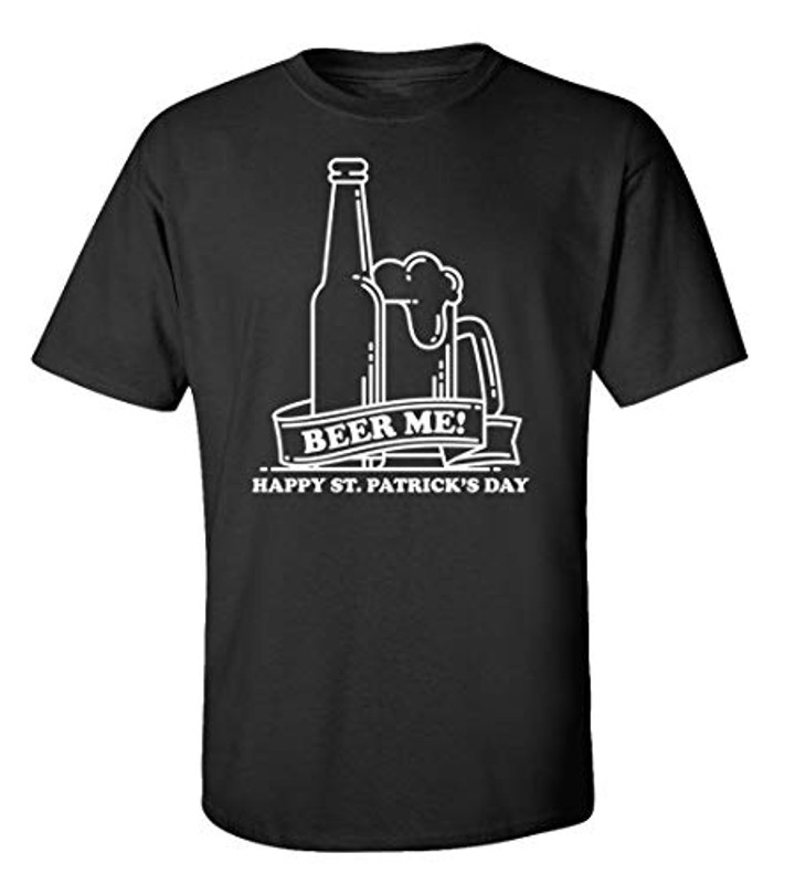 Funny St. Patrick's Day "Beer Me! Happy St. Patrick's Day" Adult Unisex Short Sleeve Shirt. This year celebrate St. Patrick's Day & show off your sense of humor at the same time! This durable, comfortable T-shirt is sure to be a hit for anyone, whether you're buying it as a gift for somebody special or wearing it yourself. This listing is for a 6 oz heavyweight 100% cotton t-shirt (sports gray is 90% cotton/10% polyester; and heather gray is 50% cotton/50% polyester) Large range of sizes are available. We carry and ever-growing selection of apparel to suit the needs of the whole family. All of our tshirts are printed in-house by our professional production team. This guarantees that you are getting unique, one-of-a-kind design. Our graphic t-shirts are printed in the USA with state of the art equipment to ensure vibrant colors and lasting durability. We custom design apparel for all occasions: birthdays, holidays, Christmas, anniversaries, and more. Our apparel, hats, and tumblers make a great gift for your mom, dad, grandma, wife, husband, daughter, son, friends, and co-workers!