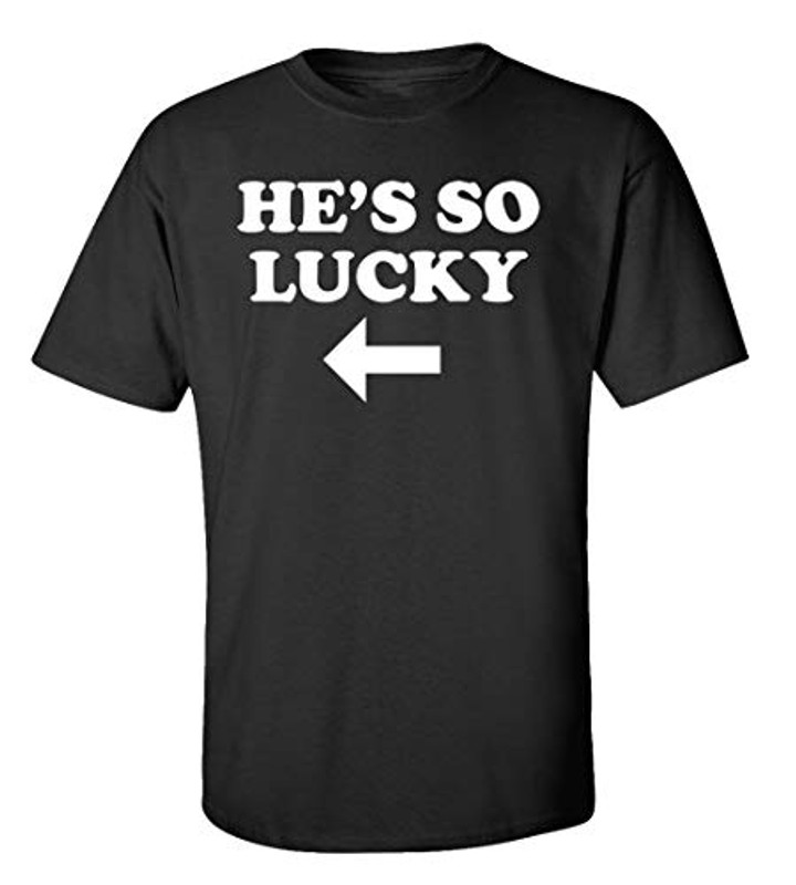 Funny St. Patrick's Day "He's So Lucky" Adult Unisex Short Sleeve Shirt. This year celebrate St. Patrick's Day & show off your sense of humor at the same time! This durable, comfortable T-shirt is sure to be a hit for anyone, whether you're buying it as a gift for somebody special or wearing it yourself. This listing is for a 6 oz heavyweight 100% cotton t-shirt (sports gray is 90% cotton/10% polyester; and heather gray is 50% cotton/50% polyester) Large range of sizes are available. We carry and ever-growing selection of apparel to suit the needs of the whole family. All of our tshirts are printed in-house by our professional production team. This guarantees that you are getting unique, one-of-a-kind design. Our graphic t-shirts are printed in the USA with state of the art equipment to ensure vibrant colors and lasting durability. We custom design apparel for all occasions: birthdays, holidays, Christmas, anniversaries, and more. Our apparel, hats, and tumblers make a great gift for your mom, dad, grandma, wife, husband, daughter, son, friends, and co-workers!