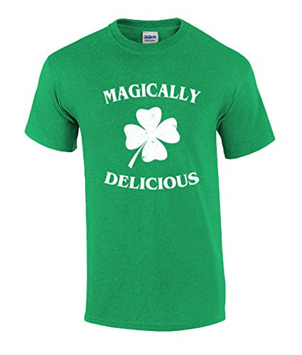 Funny St Patrick's Irish Holiday Magically Delicious Four Leaf Clover Graphic Holiday T-shirt. The front of this tee features a bold graphic a four leaf clover and the words Magically Delicious. This durable, comfortable Tee is sure to be a hit for anyone who loves the irish holiday-or beer, in general- whether you're buying it as a gift for somebody special or wearing it yourself. This listing is for a 5.3 oz. heavyweight 100% preshrunk cotton t-shirt (Ash Grey is 99% Cotton/1% Polyester; Sport Grey is 90% Cotton/10% Polyester; and Heather Gray is 50% Cotton/50% Polyester). We carry and ever-growing selection of apparel to suit the needs of the whole family. All of our tshirts are printed in-house by our professional production team. This guarantees that you are getting unique, one-of-a-kind design. Our graphic t-shirts are printed in the USA with state of the art equipment to ensure vibrant colors and lasting durability. We custom design apparel for all occasions: birthdays, holidays, Christmas, anniversaries, and more. Our apparel, hats, and tumblers make a great gift for your mom, dad, grandma, wife, husband, daughter, son, friends, and co-workers!