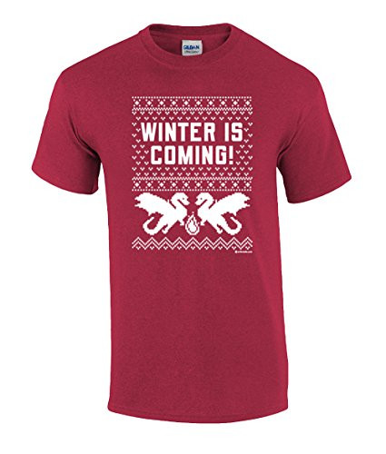 Funny Winter Is Coming Dragon Ugly Sweater Holiday Christmas Sweater T-shirt. The front features a bold festive graphic of dragons, fire, and snowflakes, along with the words Winter Is Coming. This is the perfect tee for anyone who loves getting into the festive holiday spirit and also proudly letting everyone know their favorite show! This durable, comfortable Tee is sure to be a hit, whether you're buying it as a gift for somebody special or wearing it yourself. This listing is for a 5.3 oz. heavyweight 100% preshrunk cotton t-shirt (Ash Grey is 99% Cotton/1% Polyester; Sport Grey is 90% Cotton/10% Polyester; and Heather Gray is 50% Cotton/50% Polyester). We carry and ever-growing selection of apparel to suit the needs of the whole family. All of our tshirts are printed in-house by our professional production team. This guarantees that you are getting unique, one-of-a-kind design. Our graphic t-shirts are printed in the USA with state of the art equipment to ensure vibrant colors and lasting durability. We custom design apparel for all occasions: birthdays, holidays, Christmas, anniversaries, and more. Our apparel, hats, and tumblers make a great gift for your mom, dad, grandma, wife, husband, daughter, son, friends, and co-workers!