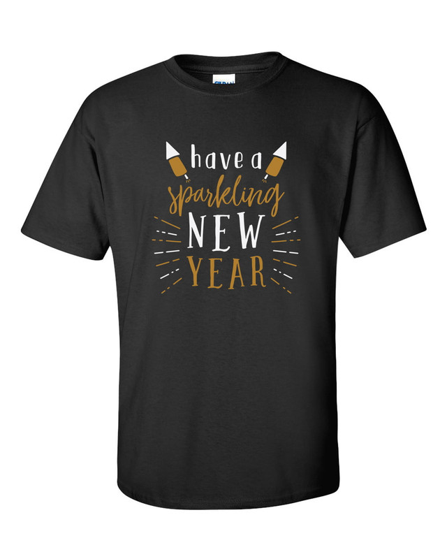 Show up to your New Year�s Eve party in our festive New Year apparel! Say good riddance to the previous year and ring in the new year in style. This super comfy tee is made of 6 oz., 100% preshrunk cotton. Ash grey, sport grey, and all other heather colors are a cotton/polyester blend. Safety colors are a 50/50 cotton and polyester blend. Double-needle stitched sleeve, hem, and 7/8 inch collar. Features a classic fit with taped neck and shoulders and a tear away label for maximum comfort and a perfect fit. This is a back print t-shirt with a small crest on the front left chest. Sizes Small-5X.
