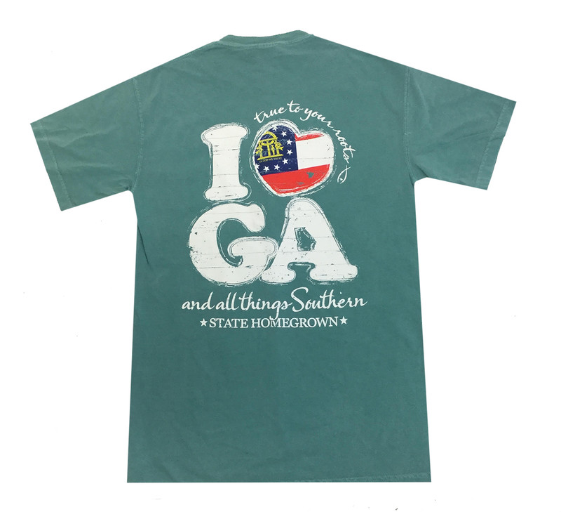 Here's the perfect pocket tee for the fall. Colorful, fun and easy-going to wear out and about. Show your love for Georgia during this school year. You'll love the feel of our super soft, preshrunk, 100% cotton, 6.1 oz. weight. Printed here in the USA.