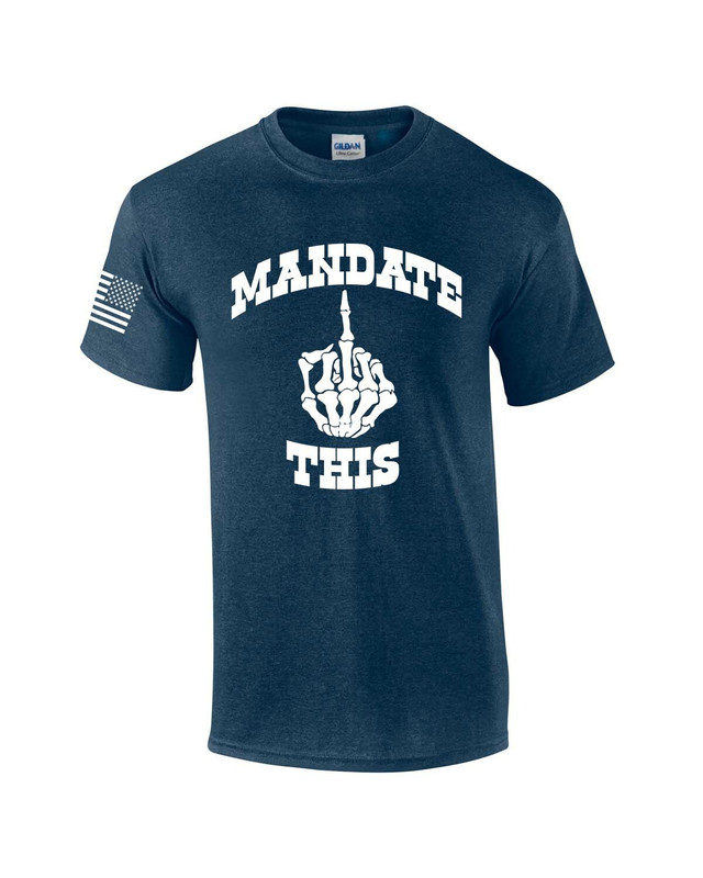 Reads: Mandate this and a skull hand flipping the bird! This super comfy tee is made of 6 oz., 100% preshrunk cotton. Ash grey, sport grey, and all other heather colors are a cotton/polyester blend. Double-needle stitched sleeve, hem, and 7/8” collar. Features a classic fit with taped neck and shoulders and a tear away label for maximum comfort and a perfect fit. We carry and ever-growing selection of apparel to suit the needs of the whole family. All of our tshirts are printed in-house by our professional production team. This guarantees that you are getting unique, one-of-a-kind design. Our graphic t-shirts are printed in the USA with state of the art equipment to ensure vibrant colors and lasting durability. We custom design apparel for all occasions: birthdays, holidays, Christmas, anniversaries, and more. Our apparel, hats, and tumblers make a great gift for your mom, dad, grandma, wife, husband, daughter, son, friends, and co-workers!