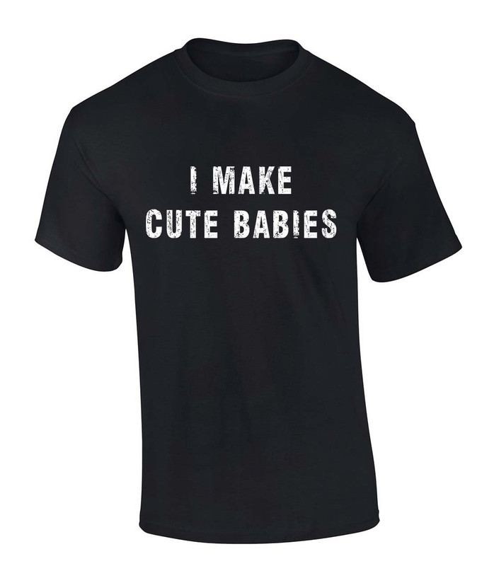 Introducing our hilarious and attention-grabbing "I Make Cute Babies" Men's T-Shirt � the ultimate conversation starter for proud dads and dads-to-be with a fantastic sense of humor! Premium Quality: Crafted from soft, breathable, and comfortable 100% cotton fabric, this t-shirt ensures all-day comfort and durability. It's perfect for everyday wear or special occasions. Funny and Playful Design: Our "I Make Cute Babies" t-shirt features a witty and lighthearted slogan in bold, eye-catching lettering, complemented by a playful graphic of a proud dad holding his adorable baby. This shirt is designed to put a smile on everyone's face and strike up delightful conversations wherever you go. Vibrant Colors: The design is printed with high-quality, vibrant ink that won't fade or crack, ensuring that your shirt stays as hilarious as ever, wash after wash. Available in a range of sizes to suit all body types, our t-shirt offers a comfortable, relaxed fit that's ideal for any occasion. Make sure to consult our size chart to find your perfect fit. Looking for a unique gift for a new dad, an expectant father, or even for yourself? This t-shirt is the perfect choice. It's a fantastic way to celebrate the joy of parenthood with a touch of humor. Get ready to turn heads and bring laughter wherever you go with our "I Make Cute Babies" Men's T-Shirt. Embrace your dad humor and celebrate the adorable little ones you've brought into the world. Order yours today and let the world know that you're the mastermind behind those cute faces!