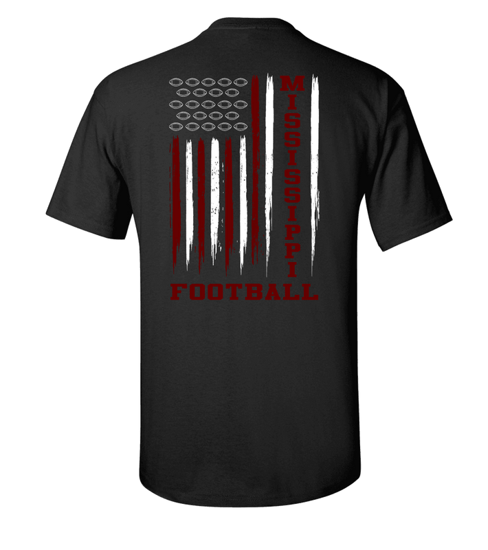 Show your team spirit with this college football flag shirt. This unisex t-shirt is perfect to wear during the football season or even simply everyday through out the year. This super comfy tee is made of 6 oz., 100% preshrunk cotton. Ash grey, sport grey, and all other heather colors are a cotton/polyester blend. Safety colors are a 50/50 cotton and polyester blend. Double-needle stitched sleeve, hem, and 7/8? collar. Features a classic fit with taped neck and shoulders and a tear away label for maximum comfort and a perfect fit. This is a back print t-shirt with a small crest on the front left chest. Sizes Small-5X. We carry and ever-growing selection of apparel to suit the needs of the whole family. All of our tshirts are printed in-house by our professional production team. This guarantees that you are getting unique, one-of-a-kind design. Our graphic t-shirts are printed in the USA with state of the art equipment to ensure vibrant colors and lasting durability. We custom design apparel for all occasions: birthdays, holidays, Christmas, anniversaries, and more. Our apparel, hats, and tumblers make a great gift for your mom, dad, grandma, wife, husband, daughter, son, friends, and co-workers!