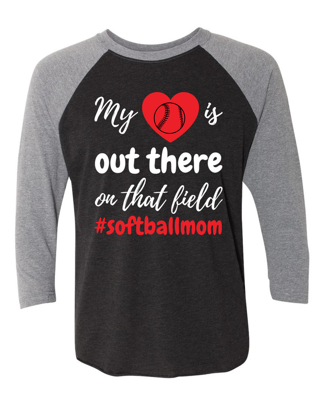 Show your love, pride, and joy for your child by wearing this raglan t-shirt that reads: “My Heart Is Out There On That Field #softballmomâ€. Made of a soft and comfortable 4.3 oz., 50% polyester 25% combed ringspun cotton 25% rayon jersey blend. The fabric has been pre-laundered for reduced shrinkage. Features 3/4 length raglan sleeves, 1x1 baby rib-knit set-in collar, and sideseams. Machine wash cold inside out. Tumble dry low. Multiple colors to choose from. Available in sizes XS-3XL. Treat yourself or give as a gift. Great for birthdays, holidays, and special occasions. We carry and ever-growing selection of apparel to suit the needs of the whole family. All of our tshirts are printed in-house by our professional production team. This guarantees that you are getting unique, one-of-a-kind design. Our graphic t-shirts are printed in the USA with state of the art equipment to ensure vibrant colors and lasting durability. We custom design apparel for all occasions: birthdays, holidays, Christmas, anniversaries, and more. Our apparel, hats, and tumblers make a great gift for your mom, dad, grandma, wife, husband, daughter, son, friends, and co-workers!