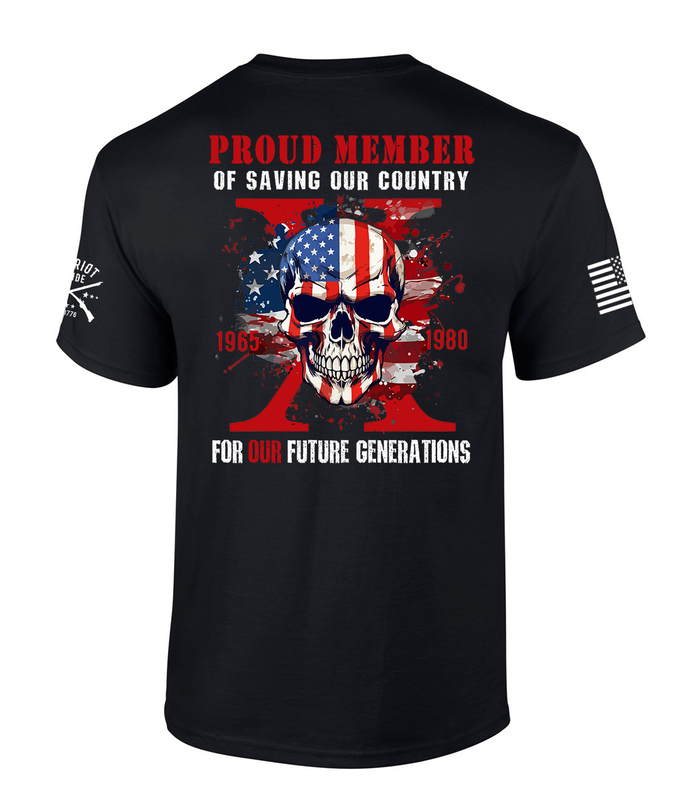 Show your American pride with our Patriot Pride Mens Proud Member Gen X Saving Our Country Short Sleeve T-Shirt! Crafted with premium quality materials, this shirt combines patriotism with style. The iconic American Skull, symbolizing freedom and independence, is boldly displayed against the backdrop of the American flag, making a powerful statement. Perfect for everyday wear, patriotic events, or showing support at rallies and gatherings. Our shirts are comfortable, durable, and designed to last. Available in various sizes to ensure the perfect fit for every patriot. Whether you're a veteran, active-duty military member, or simply a proud American, this shirt is a must-have addition to your wardrobe. Wear your patriotism on your sleeve with our Patriot Pride Mens Proud Member Gen X Saving Our Country Short Sleeve T-Shirt!