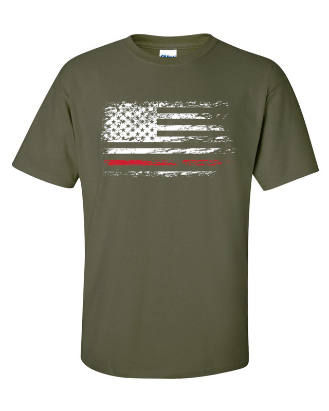 Show support for our firefighters and all other first responders in this patriotic American flag tee. Features a distressed USA flag with one red stripe. This super comfy tee is made of 6 oz., 100% preshrunk cotton. Ash grey, sport grey, and all other heather colors are a cotton/polyester blend. Double-needle stitched sleeve, hem, and 7/8†collar. Features a classic fit with taped neck and shoulders and a tear away label for maximum comfort and a perfect fit. We carry and ever-growing selection of apparel to suit the needs of the whole family. All of our tshirts are printed in-house by our professional production team. This guarantees that you are getting unique, one-of-a-kind design. Our graphic t-shirts are printed in the USA with state of the art equipment to ensure vibrant colors and lasting durability. We custom design apparel for all occasions: birthdays, holidays, Christmas, anniversaries, and more. Our apparel, hats, and tumblers make a great gift for your mom, dad, grandma, wife, husband, daughter, son, friends, and co-workers!