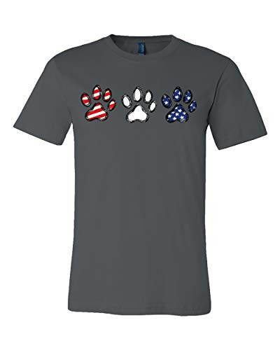 Patriotic Paw Prints With Stars & Stripes Adult Unisex Short Sleeve Jersey T-Shirt. Celebrate what you love and show off your American pride at the same time! This durable, comfortable T-shirt is sure to be a hit for anyone, whether you're buying it as a gift for somebody special or wearing it yourself. This listing is for 4.2 oz., 100% Airlume combed and ring-spun cotton. Large range of sizes are available. We carry and ever-growing selection of apparel to suit the needs of the whole family. All of our tshirts are printed in-house by our professional production team. This guarantees that you are getting unique, one-of-a-kind design. Our graphic t-shirts are printed in the USA with state of the art equipment to ensure vibrant colors and lasting durability. We custom design apparel for all occasions: birthdays, holidays, Christmas, anniversaries, and more. Our apparel, hats, and tumblers make a great gift for your mom, dad, grandma, wife, husband, daughter, son, friends, and co-workers!