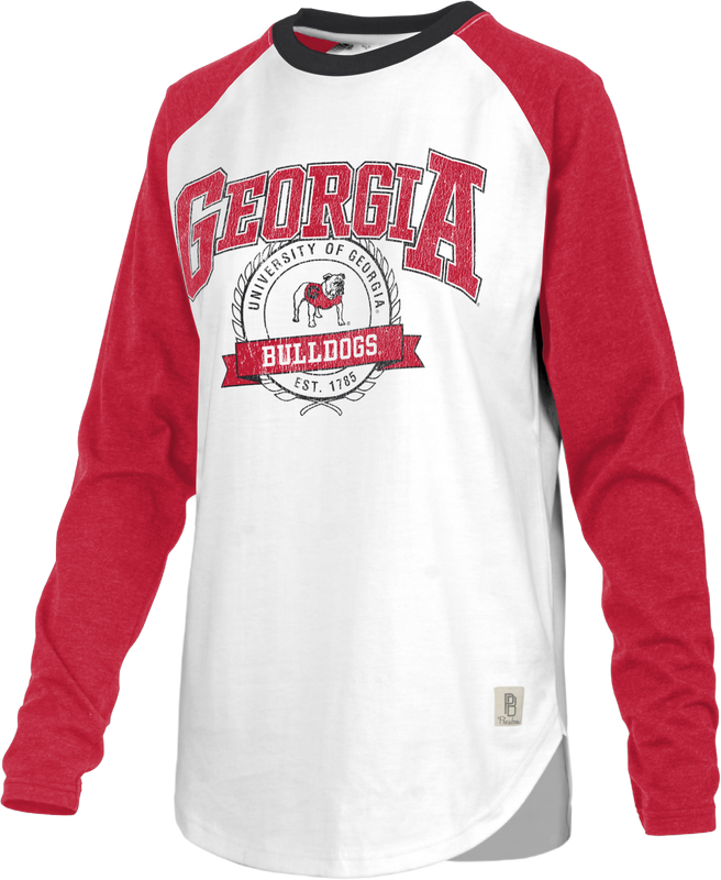 Upgrade your Georgia Bulldogs wardrobe with this T-shirt from Pressbox. The bold graphics give it a stylish look. Features a feminine fit with Screen-printed team graphics. Ribbed, tagless collar with interior taping. Machine washable. Officially licensed Georgia Bulldogs shirts.