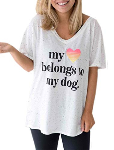 Show how much you love your fur baby in this adorable top by Jadelynn Brooke, Things She Loves. The 50% polyester, 25% combed ring spun cotton, and 25% rayon material is breezy and flowy for a perfect fit. Features trendy white speckled fabric and reads “My dog has my heart”. Makes a great gift for any dog lover!