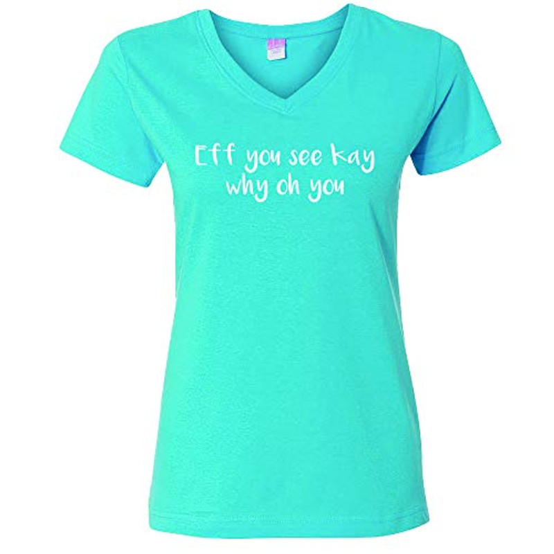 Funny 'Eff You See Kay Why Oh You' Ladies V-Neck Jersey Tee. This shirt is a clever way to make your disdain known without coming right out and saying what you're thinking. This durable, comfortable T-shirt is sure to be a hit for anyone, whether you're buying it as a gift for somebody special or wearing it yourself. This listing is for a 4.5 oz 100% combed ringspun cotton fine jersery ladies v-neck t-shirt. Slightly fitted modern styling. Sizes run smaller than standard fitting; choose sizes accordingly. Variety of colors and a large range of sizes are available. We carry and ever-growing selection of apparel to suit the needs of the whole family. All of our tshirts are printed in-house by our professional production team. This guarantees that you are getting unique, one-of-a-kind design. Our graphic t-shirts are printed in the USA with state of the art equipment to ensure vibrant colors and lasting durability. We custom design apparel for all occasions: birthdays, holidays, Christmas, anniversaries, and more. Our apparel, hats, and tumblers make a great gift for your mom, dad, grandma, wife, husband, daughter, son, friends, and co-workers!