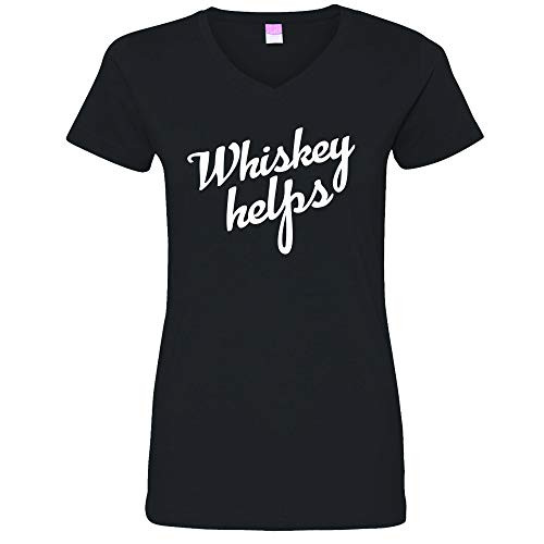 Funny 'Whiskey Helps' Ladies V-Neck Jersey Tee. Always remember when dealing with any challenge life throws your way - Whiskey Helps! This durable, comfortable T-shirt is sure to be a hit for anyone, whether you're buying it as a gift for somebody special or wearing it yourself. This listing is for a 4.5 oz 100% combed ringspun cotton fine jersery ladies v-neck t-shirt. Slightly fitted modern styling. Sizes run smaller than standard fitting; choose sizes accordingly. Variety of colors and a large range of sizes are available. We carry and ever-growing selection of apparel to suit the needs of the whole family. All of our tshirts are printed in-house by our professional production team. This guarantees that you are getting unique, one-of-a-kind design. Our graphic t-shirts are printed in the USA with state of the art equipment to ensure vibrant colors and lasting durability. We custom design apparel for all occasions: birthdays, holidays, Christmas, anniversaries, and more. Our apparel, hats, and tumblers make a great gift for your mom, dad, grandma, wife, husband, daughter, son, friends, and co-workers!