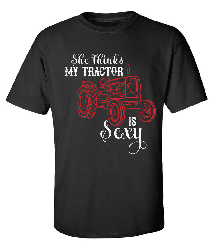 Check out our latest classic, relaxed fit crewneck t-shirt that reads "She Thinks My Tractors Is Sexy". Made of a soft and comfortable 6 oz., 100% preshrunk cotton (Ash Grey is 99/1; Sport Grey is 90/10, Antique colors are 90/10, Heathers and Safety colors are 50/50). Features include double-needle sleeve and bottom hem, seamless double-needle 7/8" collar, aped neck and shoulders, and a tear away label. Wash inside out, in cold water and tumble dry on low. Do not iron decorated areas. Multiple colors to choose from. Available in sizes S-5XL. Treat yourself or give as a gift to a friend or family member. We carry and ever-growing selection of apparel to suit the needs of the whole family. All of our tshirts are printed in-house by our professional production team. This guarantees that you are getting unique, one-of-a-kind design. Our graphic t-shirts are printed in the USA with state of the art equipment to ensure vibrant colors and lasting durability. We custom design apparel for all occasions: birthdays, holidays, Christmas, anniversaries, and more. Our apparel, hats, and tumblers make a great gift for your mom, dad, grandma, wife, husband, daughter, son, friends, and co-workers!