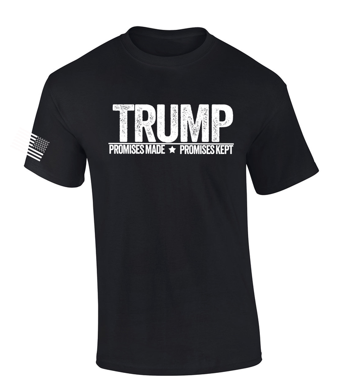 The Trenz Shirt Company Trump Star Promises Made Promises Kept American Flag Sleeve T-shirt is a bold and powerful statement piece that combines patriotism, political pride, and superior comfort. Designed for those who want to celebrate the American spirit and stand by the promises made during a significant political era, this t-shirt features a distinctive "Promises Made, Promises Kept" slogan alongside a striking design. The front of the shirt proudly displays a graphic of a star, symbolizing strength and unity, while the American flag sleeve adds an extra layer of patriotic flair. Crafted from premium cotton, this t-shirt ensures a soft, breathable, and comfortable fit, making it perfect for everyday wear. The high-quality fabric is durable yet lightweight, offering comfort all day long. The classic fit provides a relaxed, easygoing silhouette, ideal for layering or wearing on its own. Whether you're attending a rally, showing your support for your political beliefs, or simply displaying your love for the United States, this shirt makes a statement wherever you go. The unique American flag sleeve detail adds a patriotic touch that stands out. The red, white, and blue stripes combined with the stars symbolize the nation’s strength and unity, and together with the "Promises Made, Promises Kept" message, it serves as a powerful reminder of the promises that were fulfilled during a transformative time. This t-shirt is perfect for any occasion where you want to express your pride in the country and the political movement you support. Whether you’re looking to make a statement or simply show your support for the values and promises that shaped a pivotal era in American history, this t-shirt is a must-have. The high-quality material, thoughtful design, and patriotic details make it a perfect addition to any political enthusiast’s wardrobe, offering both style and comfort in one powerful package.