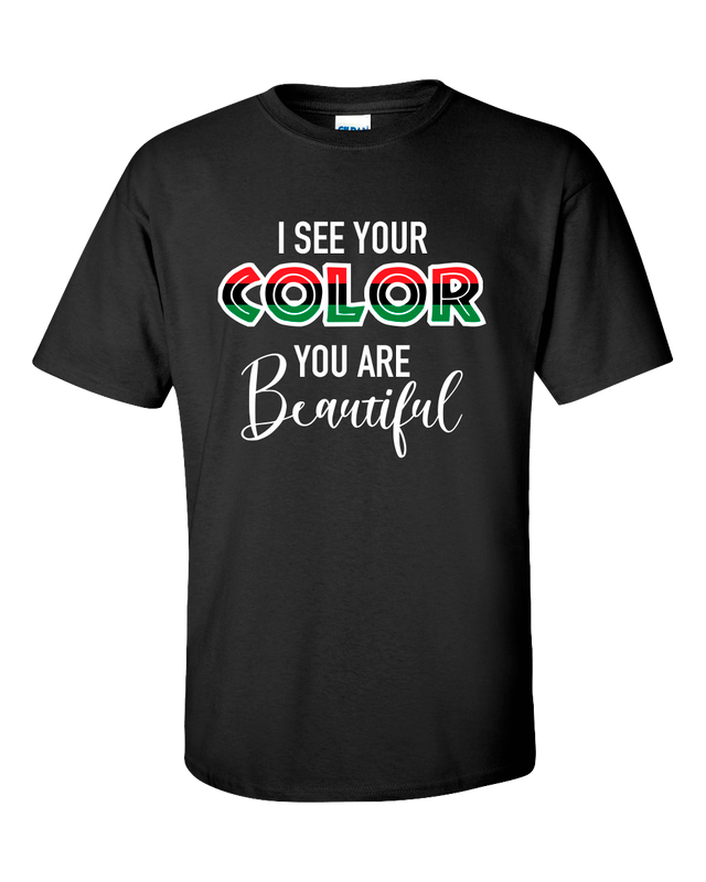 Don’t say that you don’t see color, say that you see it and it is beautiful. Send a message that you support the George Floyd protests and demand equality by wearing this t-shirt. Spread love and peace in these uncertain times. This super comfy tee is made of 6 oz., 100% preshrunk cotton. Ash grey, sport grey, and all other heather colors are a cotton/polyester blend. Double-needle stitched sleeve, hem, and 7/8†collar. Features a classic fit with taped neck and shoulders and a tear away label for maximum comfort and a perfect fit. This is a back print t-shirt with a small crest on the front left chest. Sizes Small-5X. We carry and ever-growing selection of apparel to suit the needs of the whole family. All of our tshirts are printed in-house by our professional production team. This guarantees that you are getting unique, one-of-a-kind design. Our graphic t-shirts are printed in the USA with state of the art equipment to ensure vibrant colors and lasting durability. We custom design apparel for all occasions: birthdays, holidays, Christmas, anniversaries, and more. Our apparel, hats, and tumblers make a great gift for your mom, dad, grandma, wife, husband, daughter, son, friends, and co-workers!