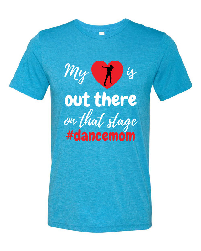 Show your love, pride, and joy for your child by wearing this shirt that reads: “My Heart Is Out There On That Stage #dancemomâ€. Made of 3.8 oz., 50% Polyester, 25% combed and ring spun cotton, and 25% rayon. The black heather tri blend is made of 70% combed and rings pun cotton, 15% polyester, and 15% rayon. Our tees have been pre-laundered for minimal shrinkage and a perfect fit. The convenient tear-away label adds to the comfort of this tee. Unisex sizing. Makes an excellent tee for yourself or given as a gift! We carry and ever-growing selection of apparel to suit the needs of the whole family. All of our tshirts are printed in-house by our professional production team. This guarantees that you are getting unique, one-of-a-kind design. Our graphic t-shirts are printed in the USA with state of the art equipment to ensure vibrant colors and lasting durability. We custom design apparel for all occasions: birthdays, holidays, Christmas, anniversaries, and more. Our apparel, hats, and tumblers make a great gift for your mom, dad, grandma, wife, husband, daughter, son, friends, and co-workers!